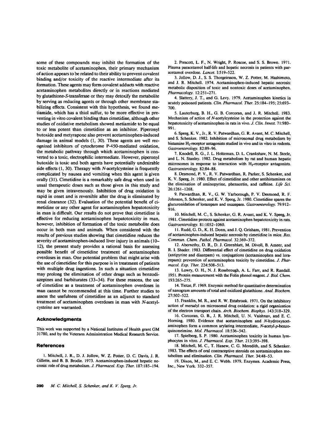 Acetaminophen-induced hepatotoxicity results from hepatic enzymatic oxidation of acetaminophen to a toxic, electrophilic intermediate. Acetaminophen is ordinarily eliminated after conjugation with glucuronic acid and sulfate to nontoxic derivatives. Cimetidine has been shown to inhibit the hepatic oxidation of a number of drugs and to protect rats from acetaminophen-induced hepatic necrosis. The aim of this study was to define the mechanism by which cimetidine reduced acetaminophen-induced hepatic necrosis and to determine whether inhibition of formation of the reactive metabolite(s) of acetaminophen occurred also in man. In vivo cimetidine pretreatment decreased covalent binding of [3H]acetaminophen to the liver from 552 +/- 23.8 to 170 +/- 31.6 nmol/g protein 2 h after a toxic dose of acetaminophen in 3-methylcholanthrene pretreated rats (P less than 0.05). Cimetidine pretreatment also significantly reduced the rate of hepatic glutathione depletion. Both cimetidine and metiamide produced dose-dependent inhibition of acetaminophen oxidation in vitro, whereas inhibition by ranitidine and cimetidine sulfoxide was quantitatively less. Inhibition of acetaminophen oxidation by cimetidine and metiamide was primarily competitive with an inhibition constant (Ki) of 130 +/- 16 and 200 +/- 50 microM, respectively. By contrast, cimetidine inhibited acetaminophen glucuronidation minimally with a Ki of 1.39 +/- 0.23 mM. Similar results were obtained using human liver microsomes as a source of enzymes. In a dose-related fashion, cimetidine also reduced acetaminophen-induced toxicity to human lymphocytes when incubated with microsomes and NADPH. Pharmacokinetics of acetaminophen elimination were studied in normal volunteers with and without co-administration of cimetidine 300 mg every 6 h. In normal volunteers, cimetidine decreased the fractional clearance of the oxidized (potentially toxic) metabolites of acetaminophen more than the conjugated metabolites. This finding confirmed the hypothesis that cimetidine is a relatively selective inhibitor of the oxidation of acetaminophen to reactive metabolites in man as well as in animals. When considered together with the results of previous studies showing improved survival and decreased hepatoxicity in acetaminophen-poisoned animals, the present results provide a rational basis for assessing possible benefits of cimetidine treatment of acetaminophen overdoses in man.