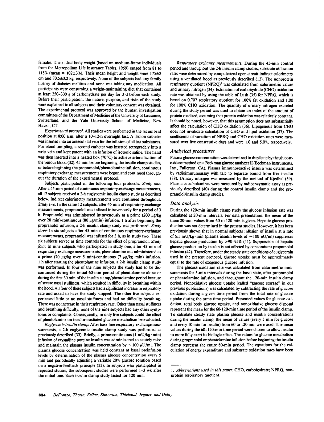 R A DeFronzo, D Thorin, J P Felber, D C Simonson, D Thiebaud, E Jequier, A Golay