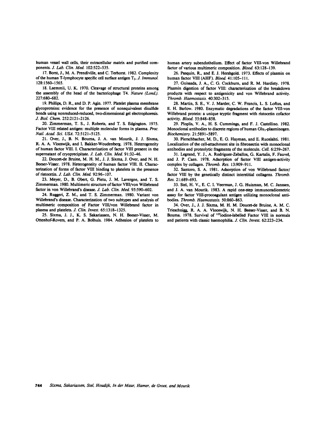 J J Sixma, K S Sakariassen, H V Stel, W P Houdijk, D W In der Maur, R J Hamer, P G de Groot, J A van Mourik
