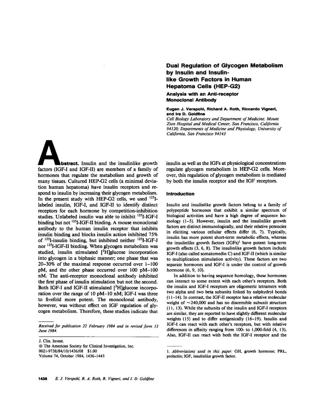E J Verspohl, R A Roth, R Vigneri, I D Goldfine