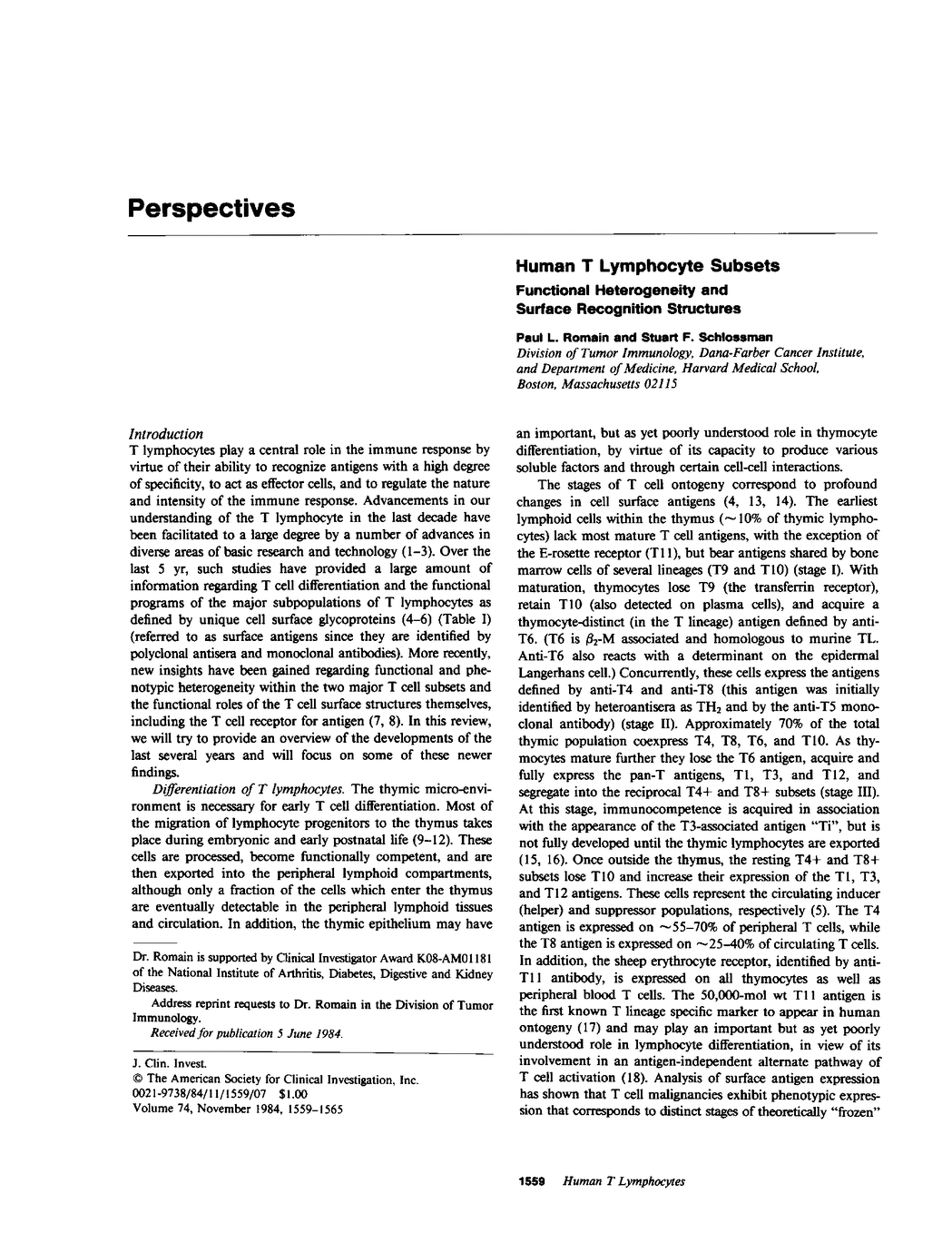 Human T lymphocyte subsets. Functional heterogeneity and surface recognition structures.