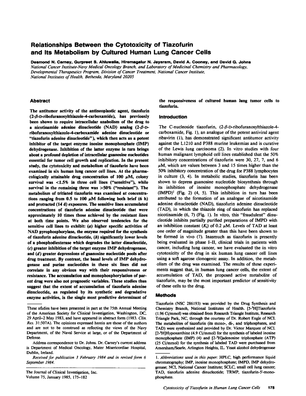 D N Carney, G S Ahluwalia, H N Jayaram, D A Cooney, D G Johns