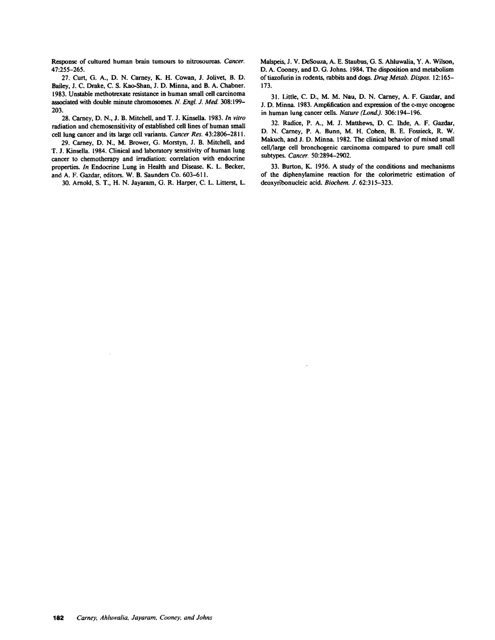 D N Carney, G S Ahluwalia, H N Jayaram, D A Cooney, D G Johns