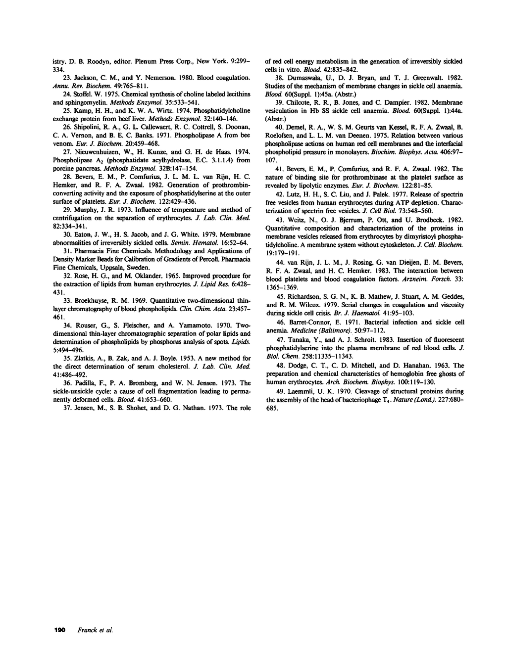 P F Franck, E M Bevers, B H Lubin, P Comfurius, D T Chiu, J A Op den Kamp, R F Zwaal, L L van Deenen, B Roelofsen