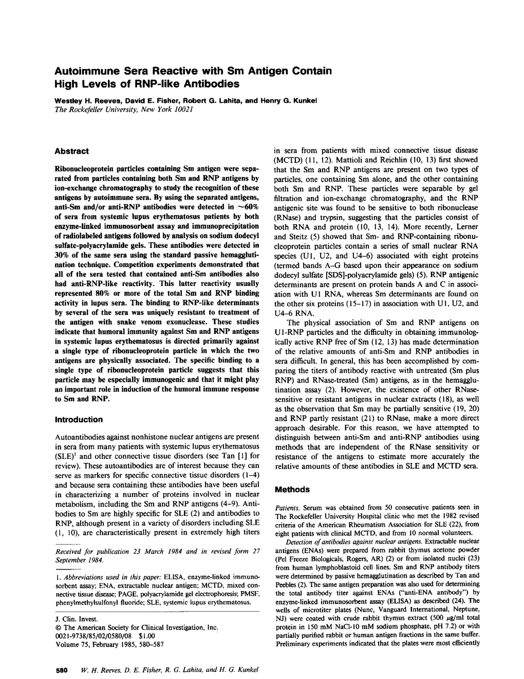 W H Reeves, D E Fisher, R G Lahita, H G Kunkel