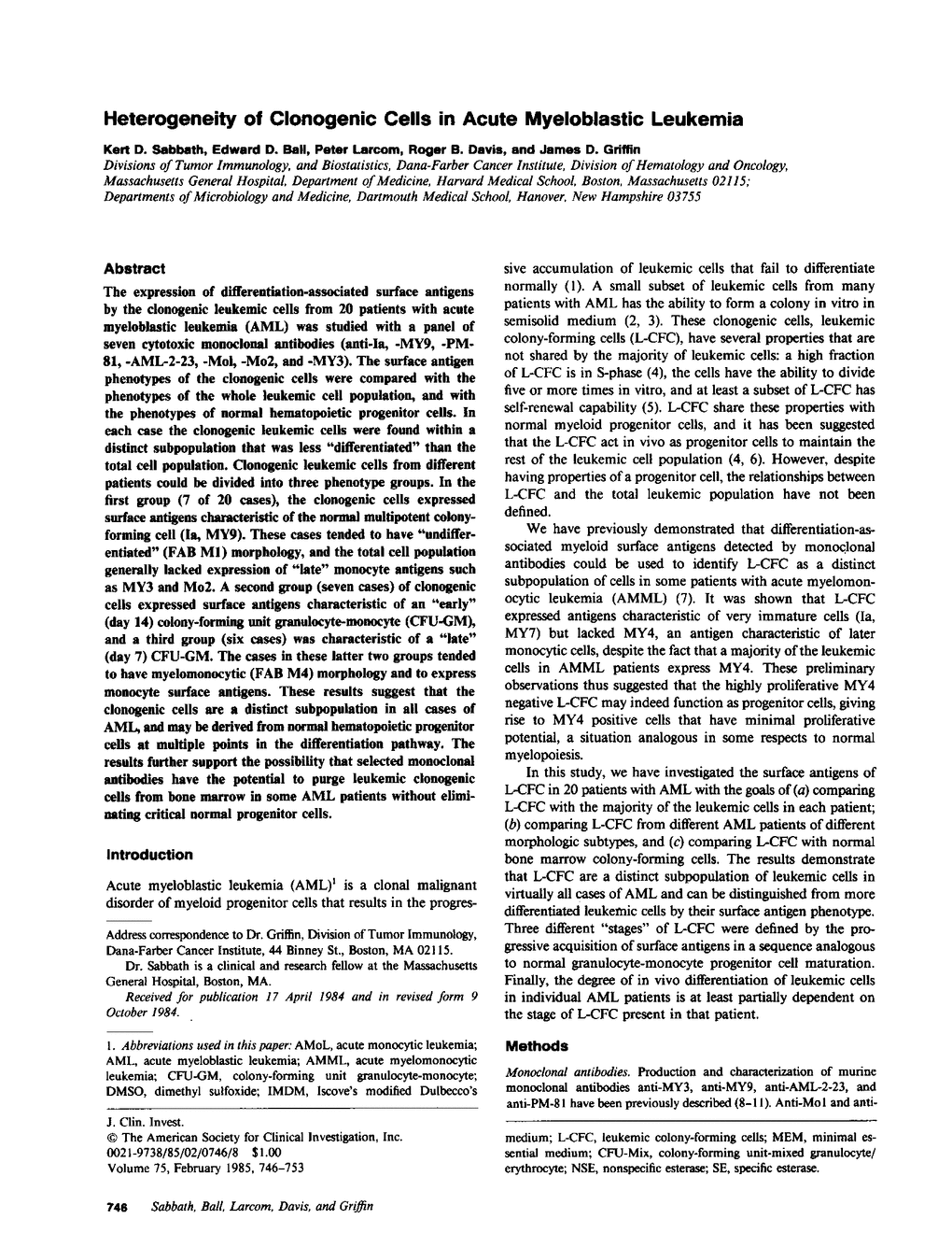 K D Sabbath, E D Ball, P Larcom, R B Davis, J D Griffin