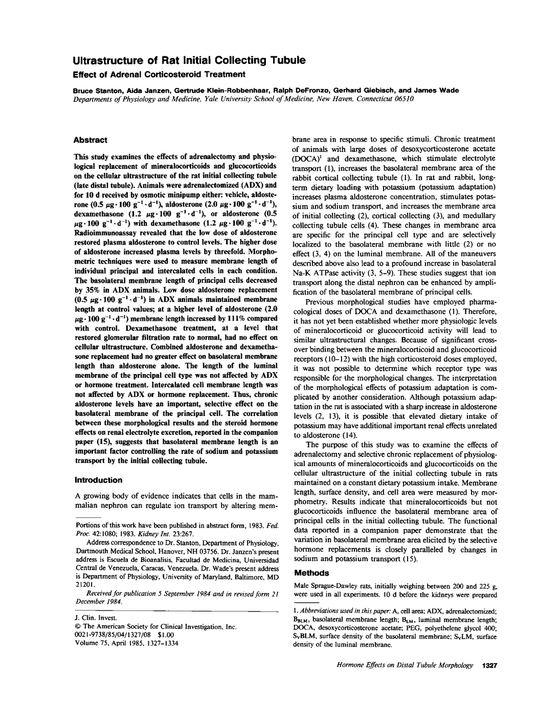 B Stanton, A Janzen, G Klein-Robbenhaar, R DeFronzo, G Giebisch, J Wade