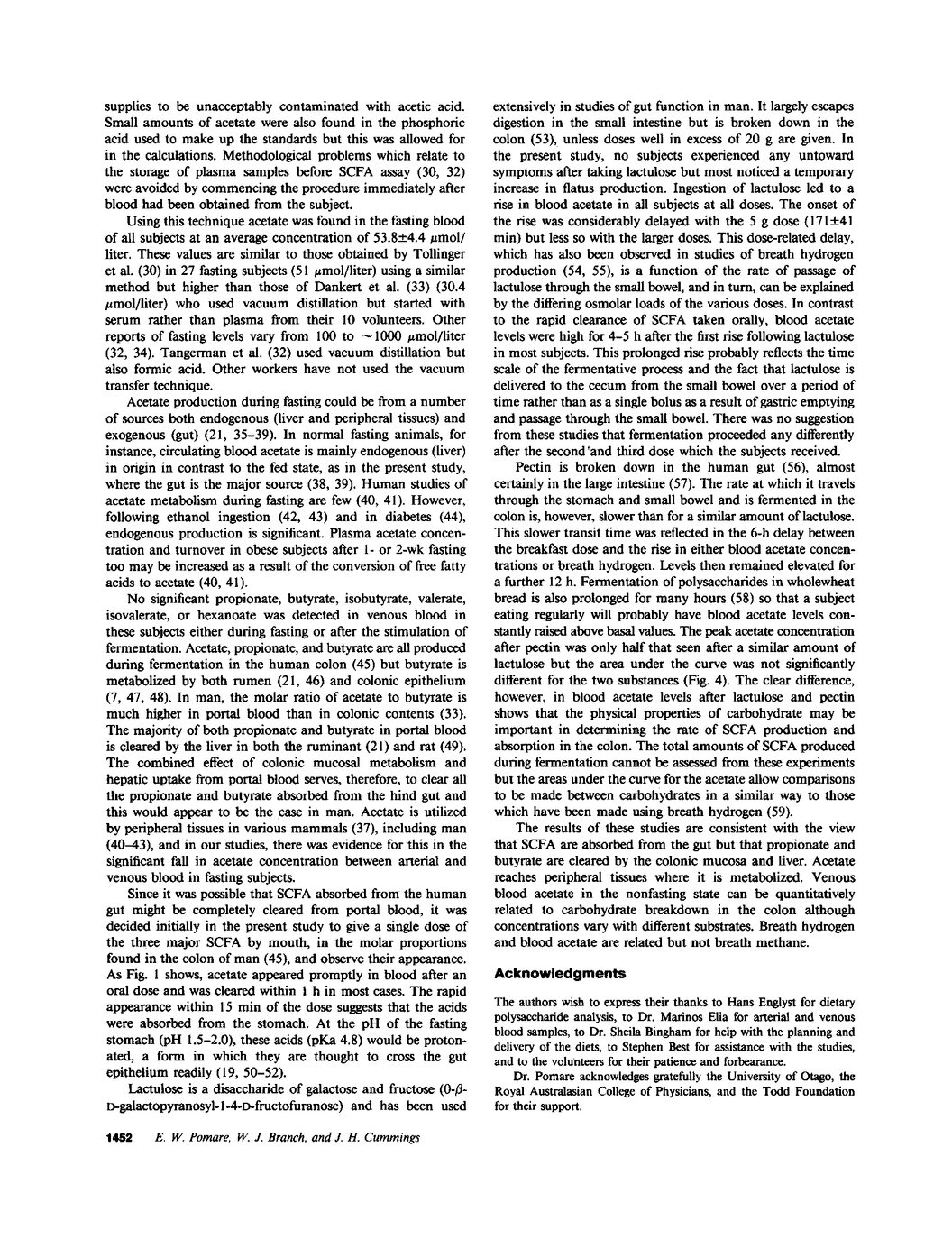 E W Pomare, W J Branch, J H Cummings