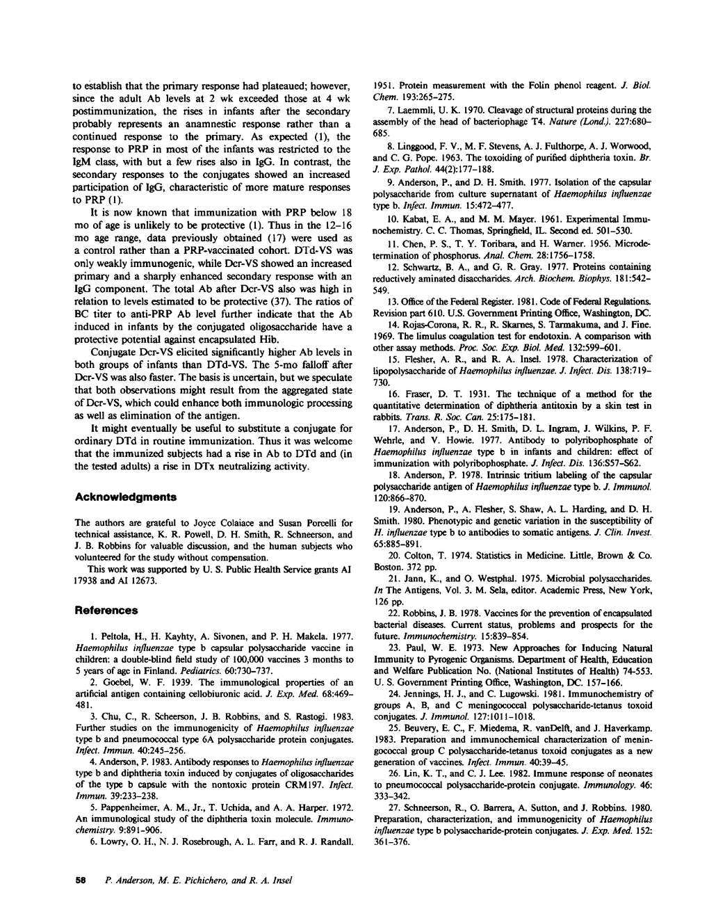 P Anderson, M E Pichichero, R A Insel