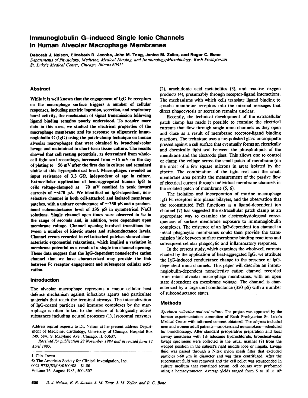 D J Nelson, E R Jacobs, J M Tang, J M Zeller, R C Bone