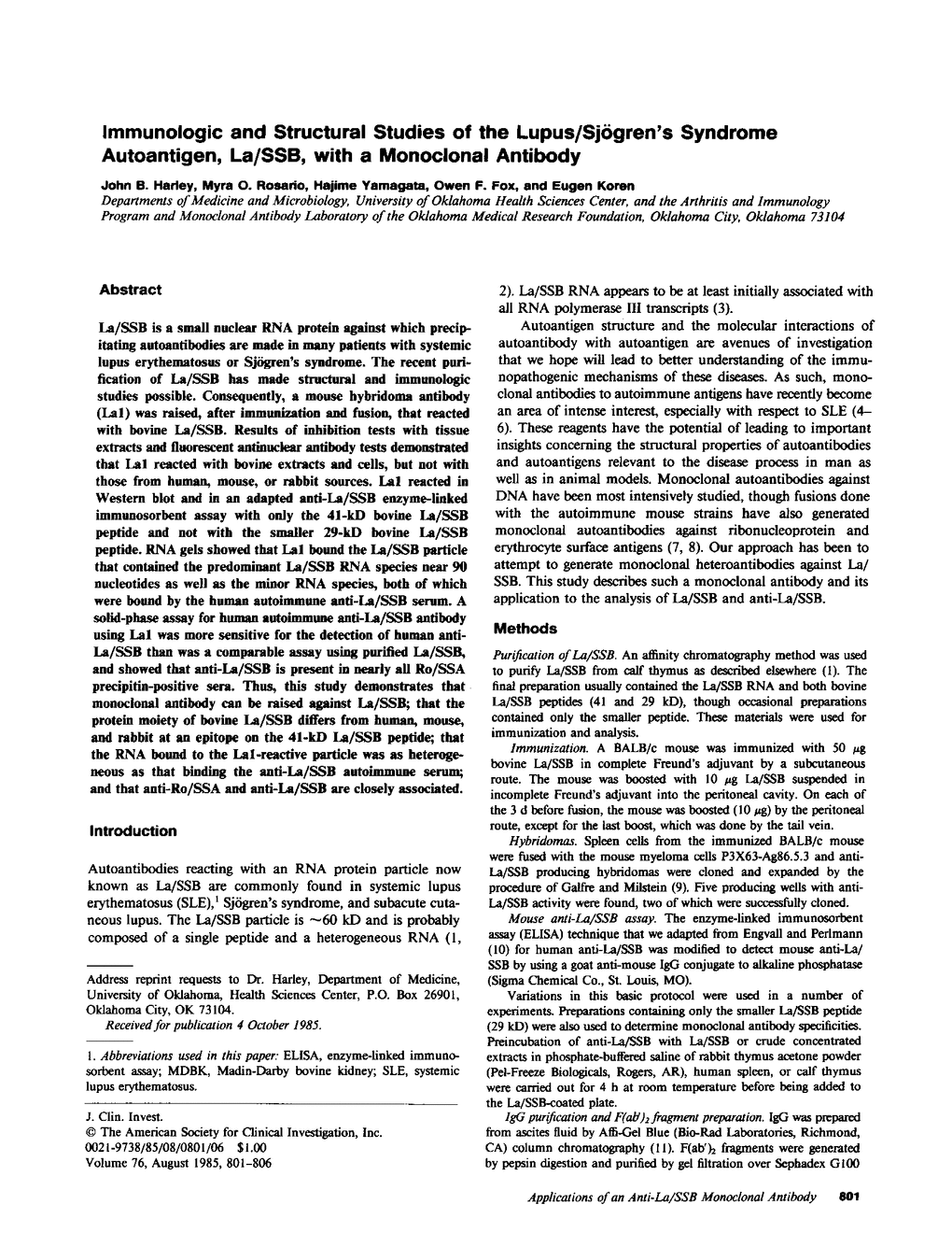 J B Harley, M O Rosario, H Yamagata, O F Fox, E Koren
