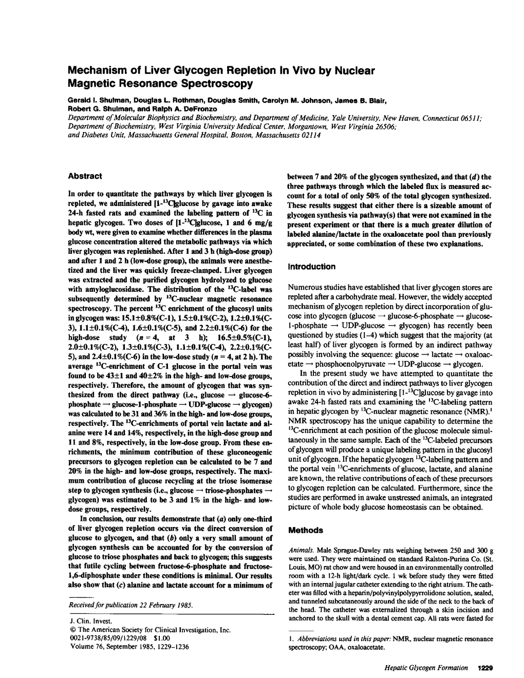 G I Shulman, D L Rothman, D Smith, C M Johnson, J B Blair, R G Shulman, R A DeFronzo