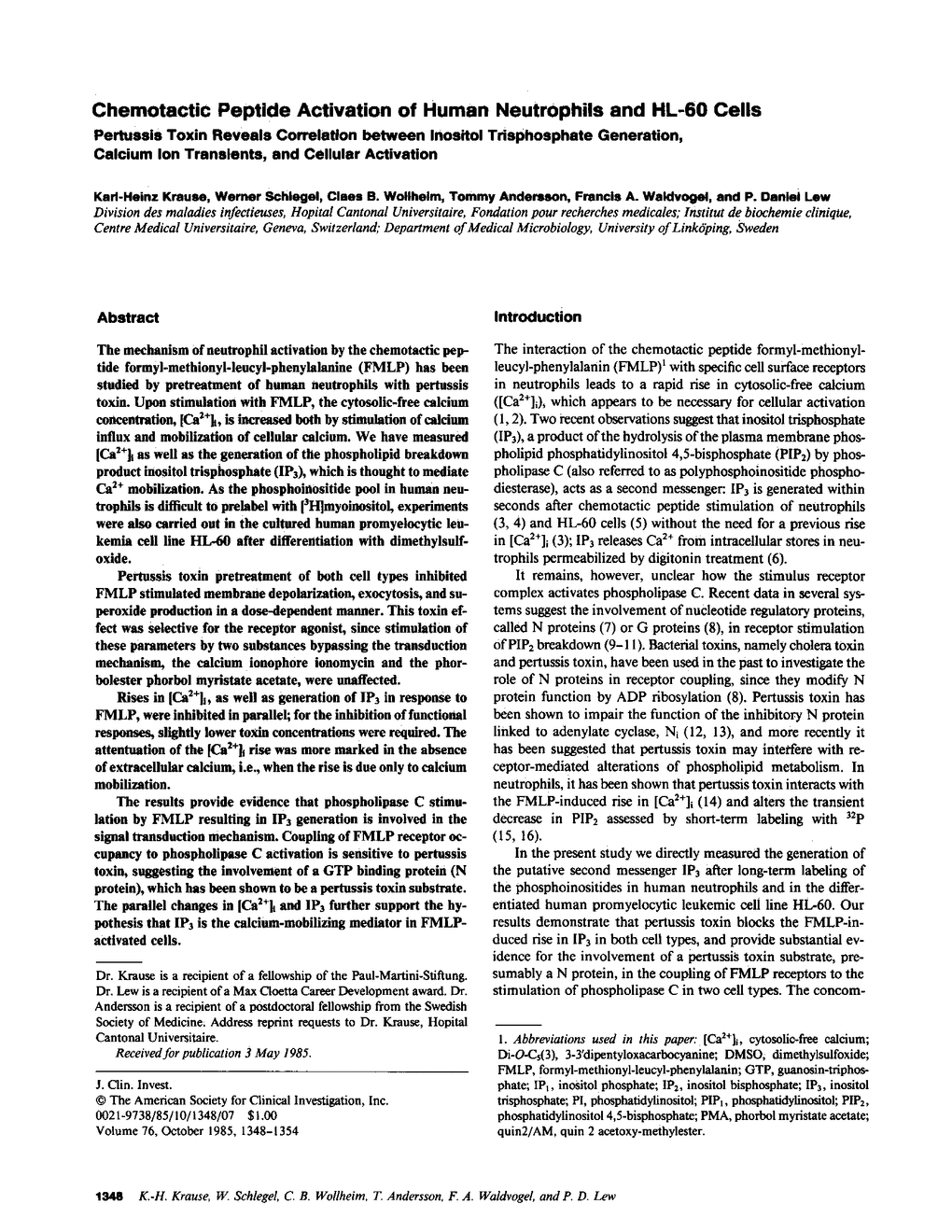 K H Krause, W Schlegel, C B Wollheim, T Andersson, F A Waldvogel, P D Lew