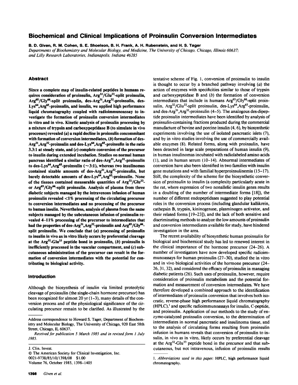 B D Given, R M Cohen, S E Shoelson, B H Frank, A H Rubenstein, H S Tager