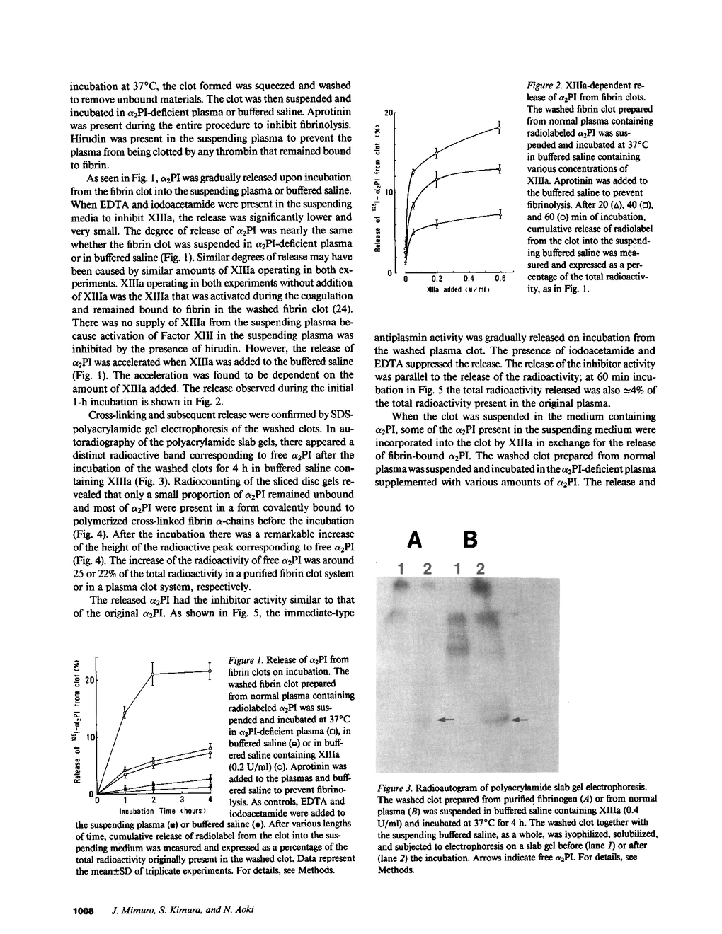 When blood coagulation takes place in the presence of calcium ions, alpha 2-plasmin inhibitor (alpha 2PI) is cross-linked to fibrin by activated coagulation Factor XIII (XIIIa) and thereby contributes to the resistance of fibrin to fibrinolysis. It was previously shown that the cross-linking reaction is a reversible one, since the alpha 2PI-fibrinogen cross-linked complex could be dissociated. In the present study we have shown that the alpha 2PI-fibrin cross-linking reaction is also a reversible reaction and alpha 2PI which had been cross-linked to fibrin can be released from fibrin by disrupting the equilibrium, resulting in a decrease of its resistance to fibrinolysis. When the fibrin clot formed from normal plasma in the presence of calcium ions was suspended in alpha 2PI-deficient plasma of buffered saline, alpha 2PI was gradually released from fibrin on incubation. When alpha 2PI was present in the suspending milieu, the release was decreased inversely to the concentrations of alpha 2PI in the suspending milieu. The release was accelerated by supplementing XIIIa or the presence of a high concentration of the NH2-terminal 12-residue peptide of alpha 2PI (N-peptide) which is cross-linked to fibrin in exchange for the release of alpha 2PI. When the release of alpha 2PI from fibrin was accelerated by XIIIa or N-peptide, the fibrin became less resistant to the fibrinolytic process, resulting in an acceleration of fibrinolysis which was proportional to the degree of the release of alpha 2PI. These results suggest the possibility that alpha 2PI could be released from fibrin in vivo by disrupting the equilibrium of the alpha 2PI-fibrin cross-linking reaction, and that the release would result in accelerated thrombolysis.