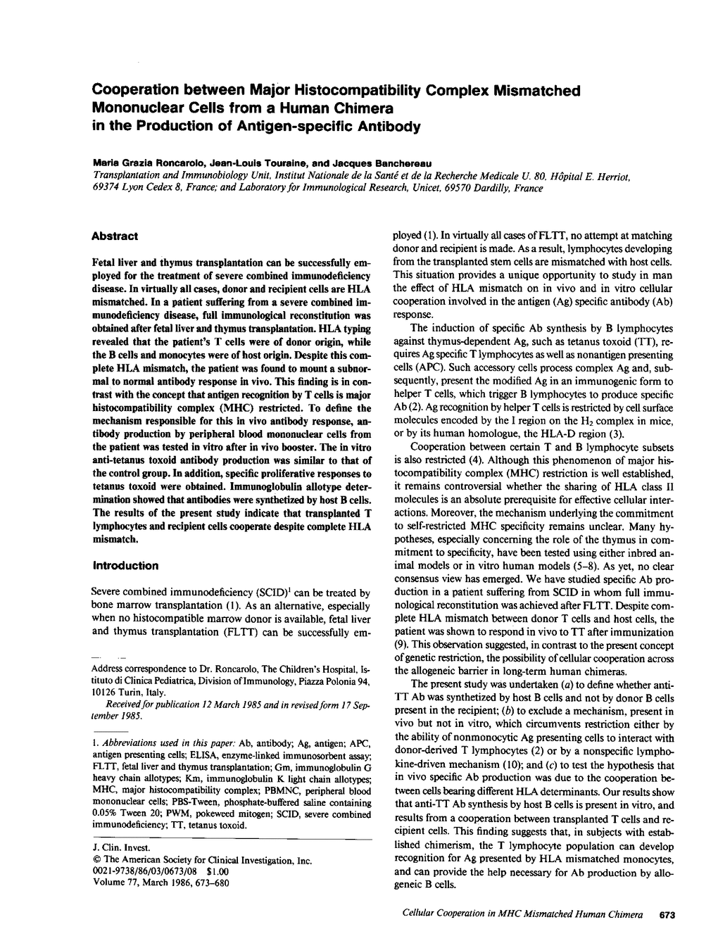 M G Roncarolo, J L Touraine, J Banchereau