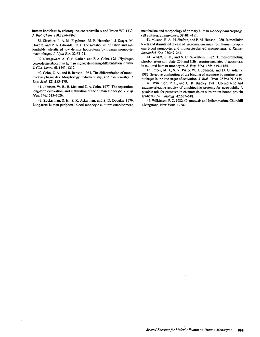 A comparison of the receptor-mediated interaction of malondialdehyde-low density lipoprotein and maleyl-albumin has been examined in human monocytes during differentiation in vitro. The recognition of both ligands by the scavenger receptor of these cells has been confirmed. We now report that human monocytes express a second cellular surface receptor for maleyl-albumin that is distinct from the scavenger receptor. The activity of the maleyl-albumin receptor, determined by both binding and lysosomal hydrolytic assays, substantially exceeds that of the scavenger receptor in freshly isolated monocytes. A dramatic and rapid decline in the activity of the maleyl-albumin receptor occurs within 72 to 96 h during differentiation in vitro. At day 7, while only 5-10% of the original activity of the maleyl-albumin receptor remains, it is similar to that of the maximally expressed scavenger receptor. Both the binding and hydrolysis of ligand mediated by the maleyl-albumin receptor are specifically inhibited by alpha-casein and alkaline-treated albumin; neither of these proteins is recognized by the scavenger receptor. The occurrence of the exceptionally active maleyl-albumin receptor on freshly isolated human monocytes suggests that it participates in processes necessary to the function of the cells that diminish in importance after differentiation of the monocytes into macrophages in vitro. Furthermore, while maleyl-albumin is a useful adjunct to studies of cellular events mediated by the scavenger receptor, the presence of a second receptor for maleyl-albumin must be taken into account as a potential contributing and complicating event.