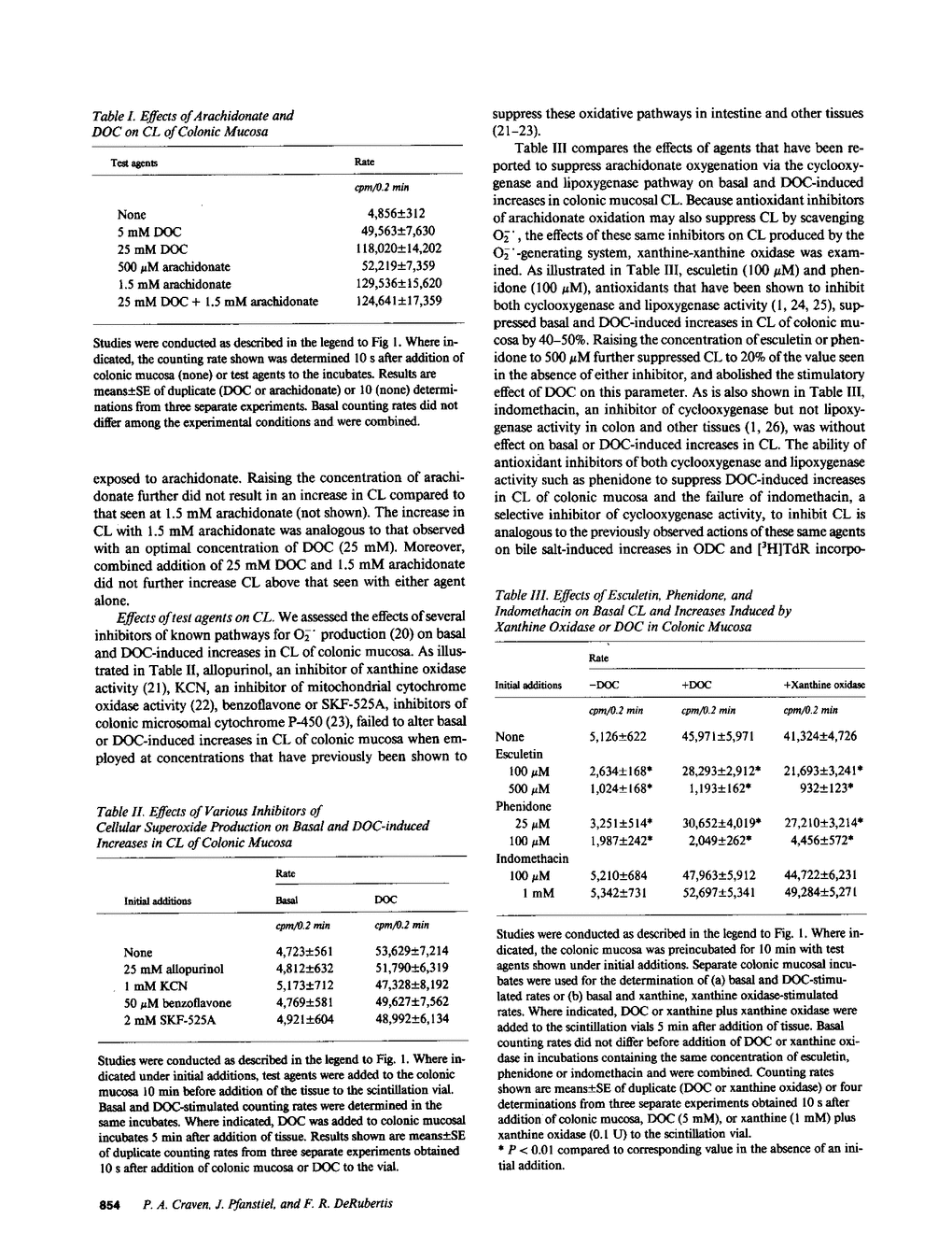 Our previous studies had suggested a link between bile salt stimulation of colonic epithelial proliferation and the release and oxygenation of arachidonate via the lipoxygenase pathway. In the present study, we examined the role of reactive oxygen versus end products of arachidonate metabolism via the cyclooxygenase and lipoxygenase pathways in bile salt stimulation of rat colonic epithelial proliferation. Intracolonic instillation of 5 mM deoxycholate increased mucosal ornithine decarboxylase activity and [3H]thymidine incorporation into DNA. Responses to deoxycholate were abolished by the superoxide dismutase mimetic CuII (3,5 diisopropylsalicylic acid)2 (CuDIPS), and by phenidone or esculetin, which inhibit both lipoxygenase and cyclooxygenase activities. By contrast, indomethacin potentiated the response. Phenidone and esculetin suppressed deoxycholate-induced increases in prostaglandin E2 (PGE2), leukotriene B4 (LTB4), and 5, 12, and 15-hydroxyeicosatetraenoic acid (HETE), whereas CuDIPS had no effect. Indomethacin suppressed only PGE2. Deoxycholate (0.5-5 mM) increased superoxide dismutase sensitive chemiluminescence 2-10-fold and stimulated superoxide production as measured by cytochrome c reduction in colonic mucosal scrapings or crypt epithelium. Bile salt-induced increases in chemiluminescence were abolished by CuDIPS, phenidone, and esculetin, but not by indomethacin. Intracolonic generation of reactive oxygen by xanthine-xanthine oxidase increased colonic mucosal ornithine decarboxylase activity and [3H]thymidine incorporation into DNA approximately twofold. These effects were abolished by superoxide dismutase. The findings support a key role for reactive oxygen, rather than more distal products of either the lipoxygenase or cyclooxygenase pathways, in the stimulation of colonic mucosal proliferation by bile salts.
