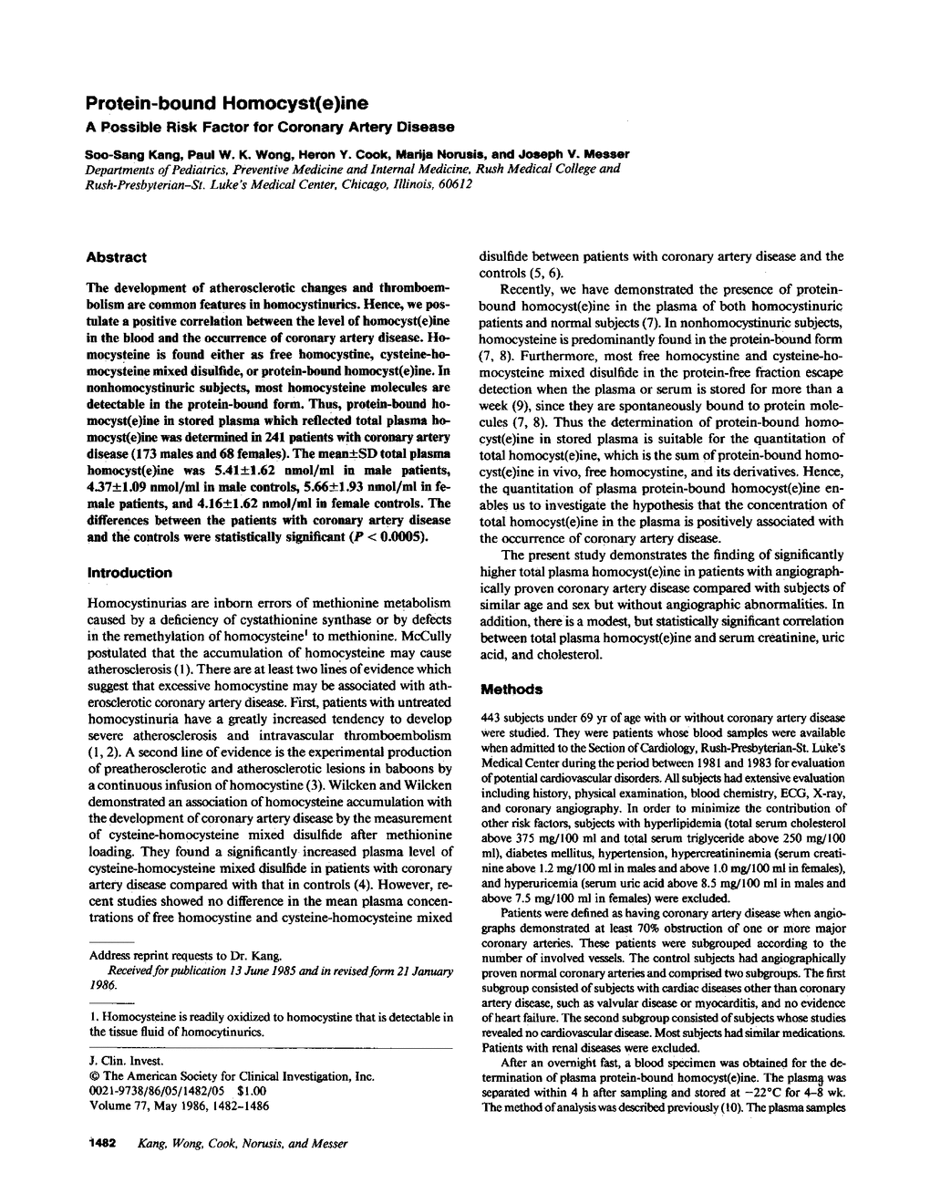 S S Kang, P W Wong, H Y Cook, M Norusis, J V Messer