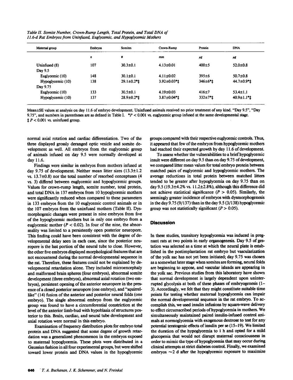 To test whether maternal hypoglycemia can impair organogenesis, we induced brief glucopenia with insulin in conscious pregnant rats during either the headfold stage or the early neural tube closure stage of embryogenesis. At each time, 10 pairs of animals received identical insulin infusions for 1 h. Half the animals were maintained at euglycemia during the infusions, while the others were allowed to become hypoglycemic. Euglycemia was maintained or restored in all animals immediately after the insulin was stopped. Spontaneous activity was diminished during the hypoglycemia but consciousness was preserved. Embryos were removed from mothers and examined 2 d later. This examination revealed that embryos from the hypoglycemic mothers were growth-retarded and displayed a small but significant incidence of gross developmental anomalies compared with embryos from the insulin-infused euglycemic mothers. Thus, brief, mild maternal hypoglycemia during early organogenesis can disrupt normal embryo development in the rat. The effect is due to the hypoglycemia per se rather than to the insulin employed for its induction.