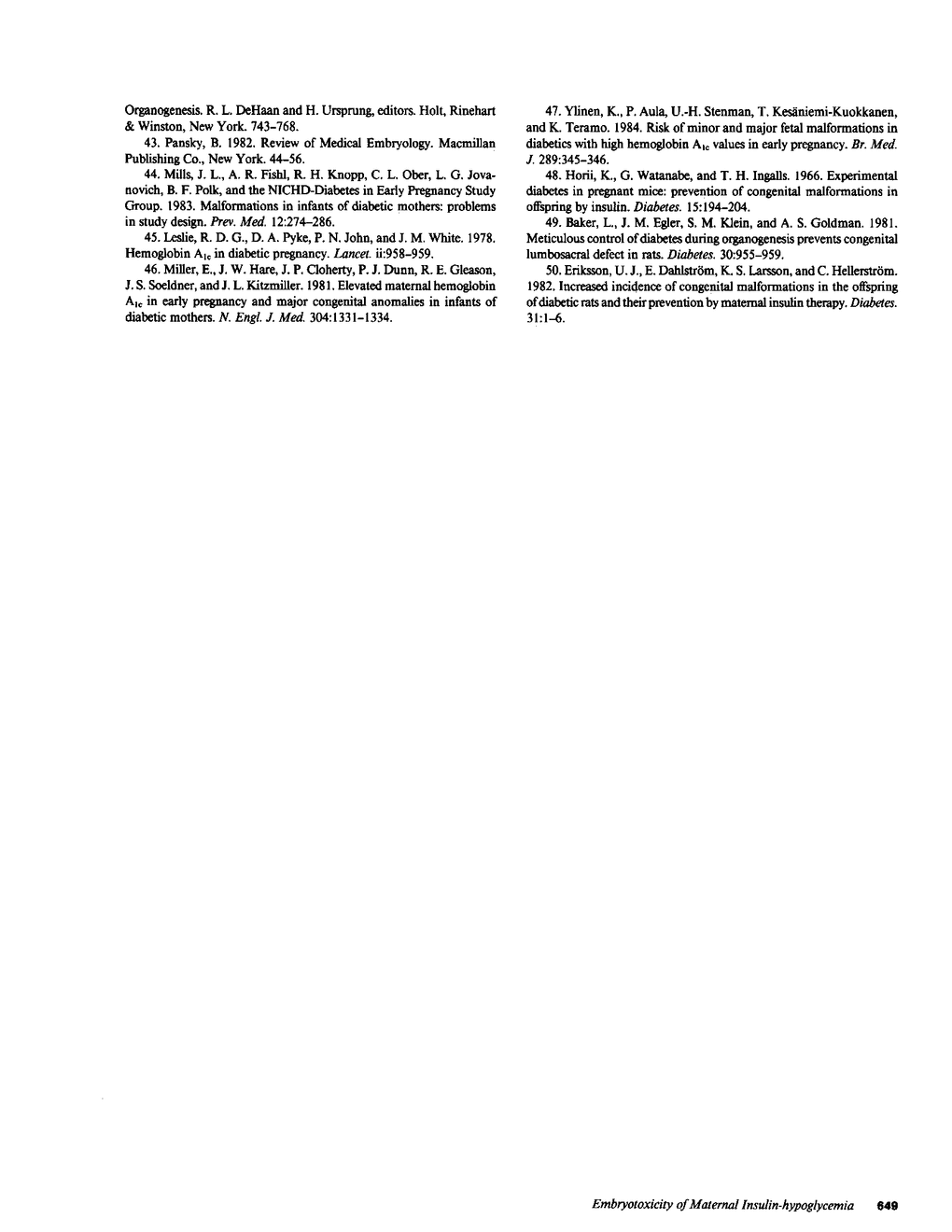 To test whether maternal hypoglycemia can impair organogenesis, we induced brief glucopenia with insulin in conscious pregnant rats during either the headfold stage or the early neural tube closure stage of embryogenesis. At each time, 10 pairs of animals received identical insulin infusions for 1 h. Half the animals were maintained at euglycemia during the infusions, while the others were allowed to become hypoglycemic. Euglycemia was maintained or restored in all animals immediately after the insulin was stopped. Spontaneous activity was diminished during the hypoglycemia but consciousness was preserved. Embryos were removed from mothers and examined 2 d later. This examination revealed that embryos from the hypoglycemic mothers were growth-retarded and displayed a small but significant incidence of gross developmental anomalies compared with embryos from the insulin-infused euglycemic mothers. Thus, brief, mild maternal hypoglycemia during early organogenesis can disrupt normal embryo development in the rat. The effect is due to the hypoglycemia per se rather than to the insulin employed for its induction.