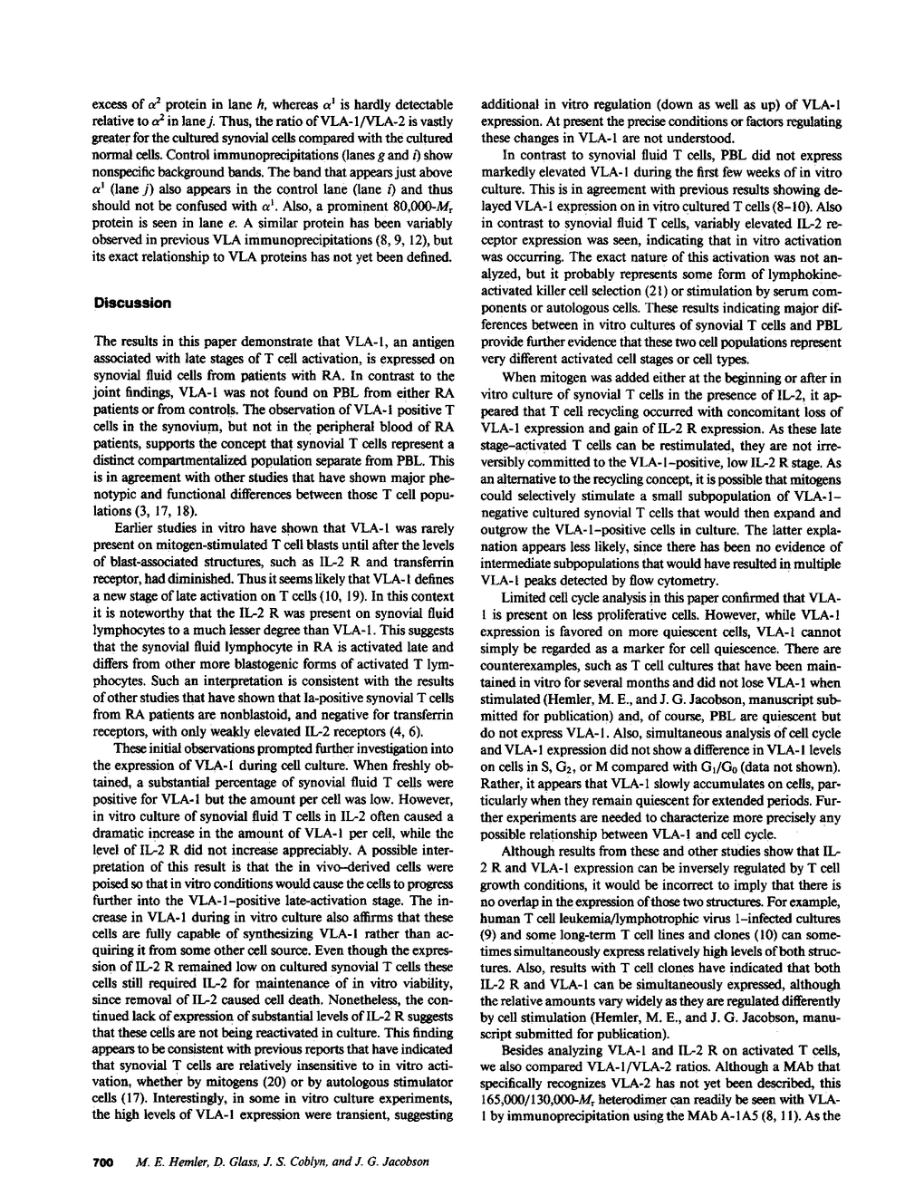 M E Hemler, D Glass, J S Coblyn, J G Jacobson