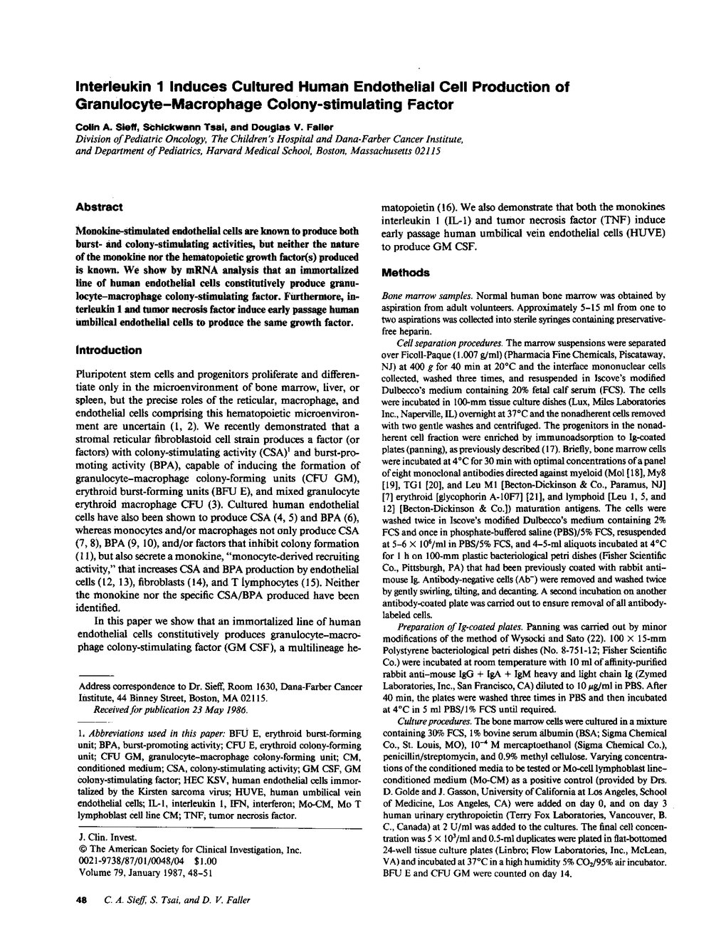 Monokine-stimulated endothelial cells are known to produce both burst- and colony-stimulating activities, but neither the nature of the monokine nor the hematopoietic growth factor(s) produced is known. We show by mRNA analysis that an immortalized line of human endothelial cells constitutively produce granulocyte-macrophage colony-stimulating factor. Furthermore, interleukin 1 and tumor necrosis factor induce early passage human umbilical endothelial cells to produce the same growth factor.