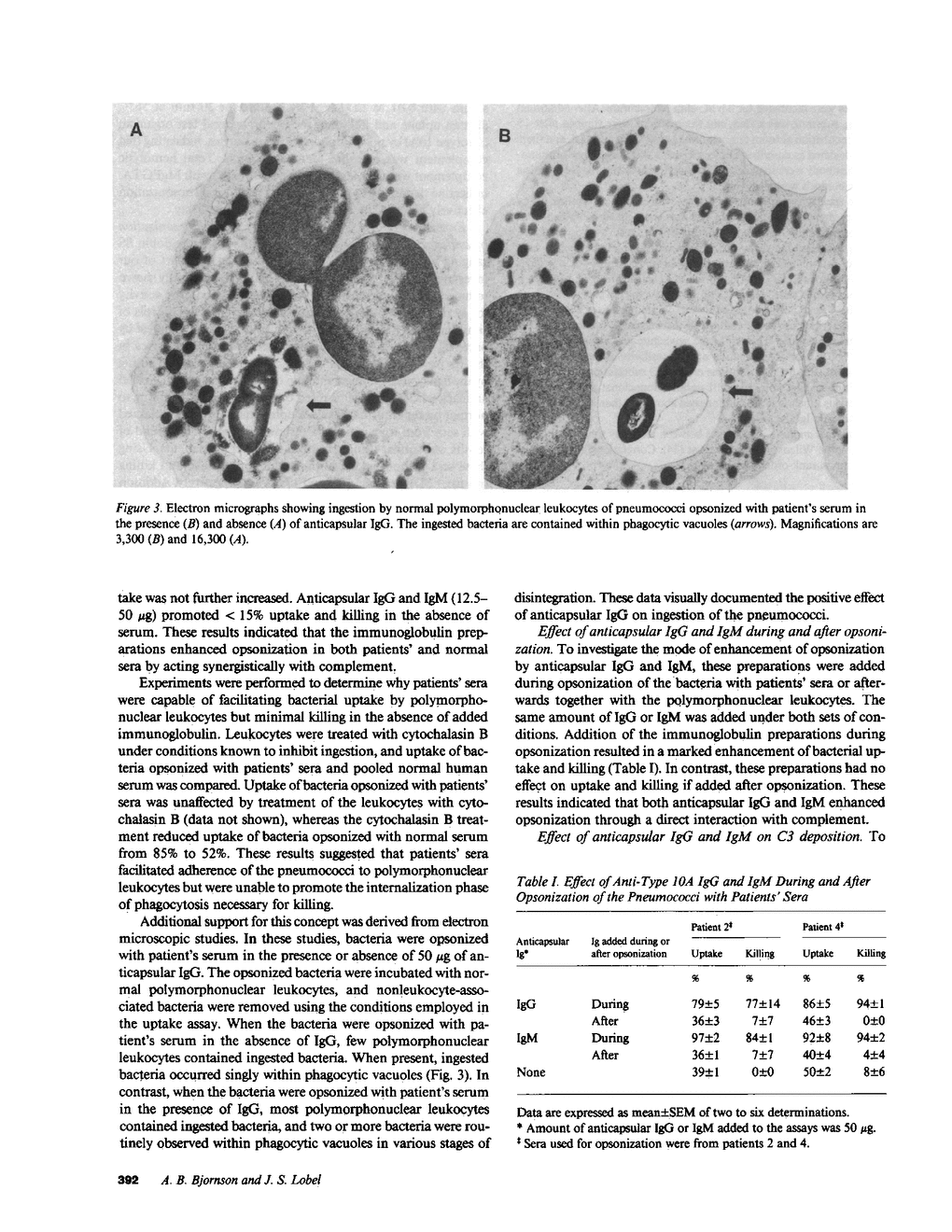 Two approaches were used to demonstrate that reduction in serum opsonization of Streptococcus pneumoniae via the alternative complement pathway in children with sickle cell disease is related to a deficiency of antibodies to pneumococcal capsular polysaccharide. First, opsonization of S. pneumoniae mediated by the alternative pathway in patients' sera was restored to normal by addition of the purified IgG or IgM fraction of goat antiserum to capsular polysaccharide of the homologous serotype. Secondly, IgG antibody titers to capsular polysaccharide in patients' sera correlated significantly with alternative pathway-mediated opsonization; the correlation between titers of IgM anticapsular antibodies and opsonization approached statistical significance. The sum of the IgG and IgM anticapsular antibody titers correlated most significantly with opsonization. Our results suggest that reduction in alternative pathway-mediated opsonization in sera from children with sickle cell disease is related to low levels of both IgG and IgM anticapsular antibodies.