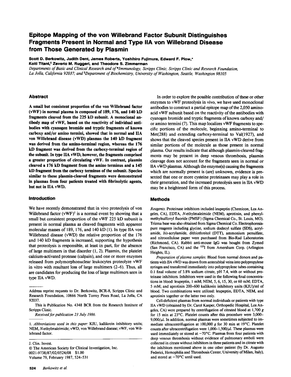 S D Berkowitz, J Dent, J Roberts, Y Fujimura, E F Plow, K Titani, Z M Ruggeri, T S Zimmerman