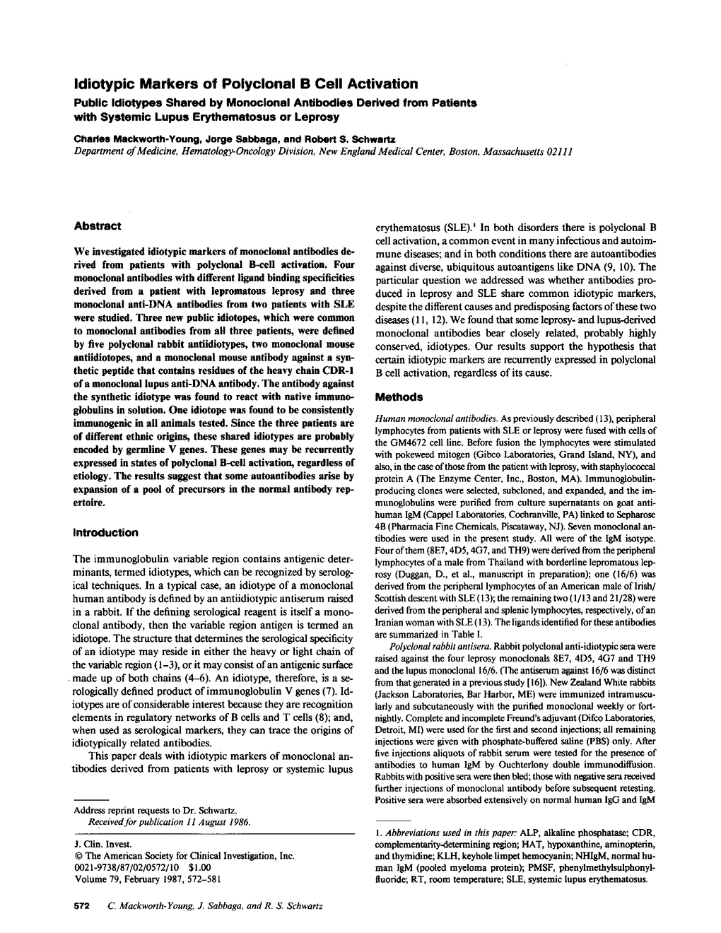 C Mackworth-Young, J Sabbaga, R S Schwartz
