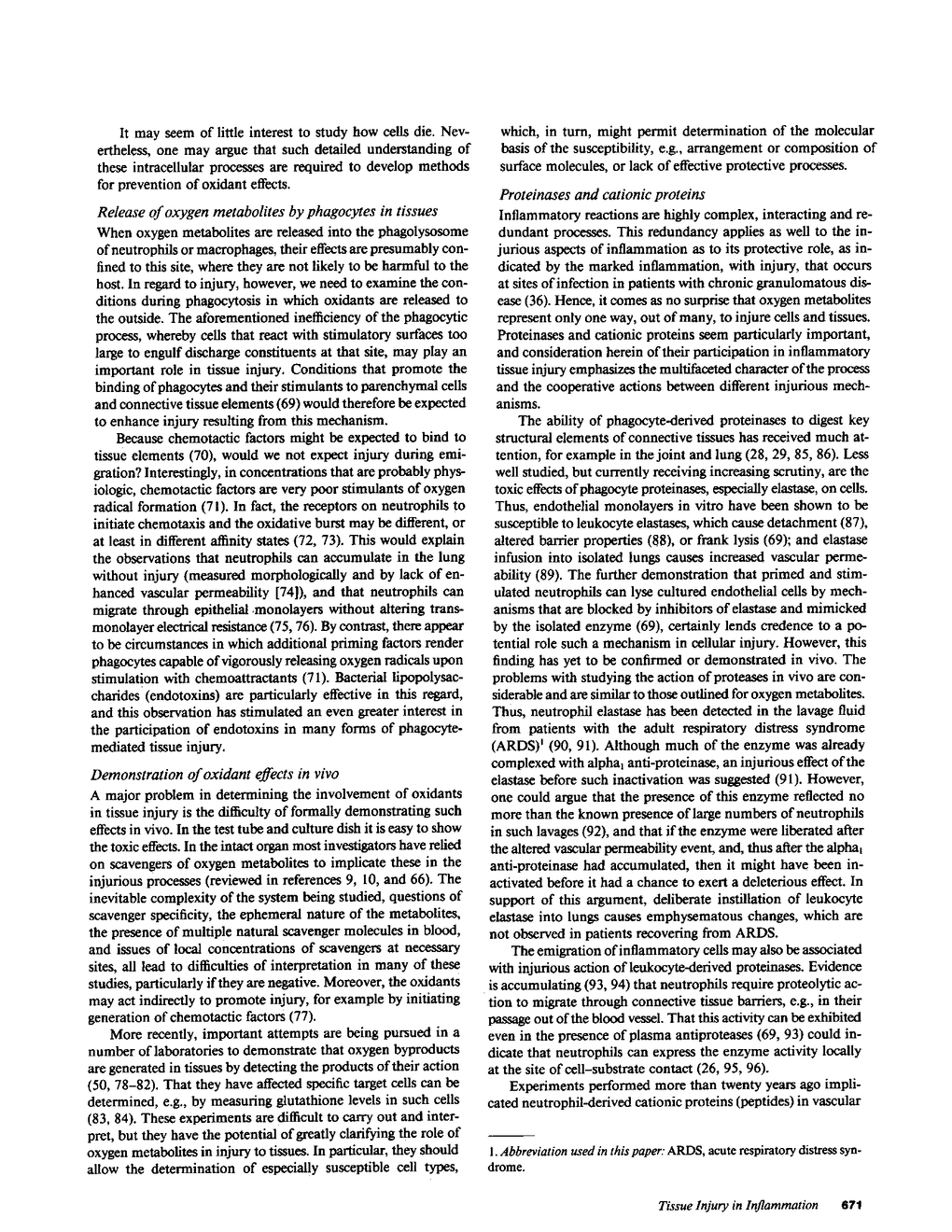 Tissue injury in inflammation. Oxidants, proteinases, and cationic proteins.
