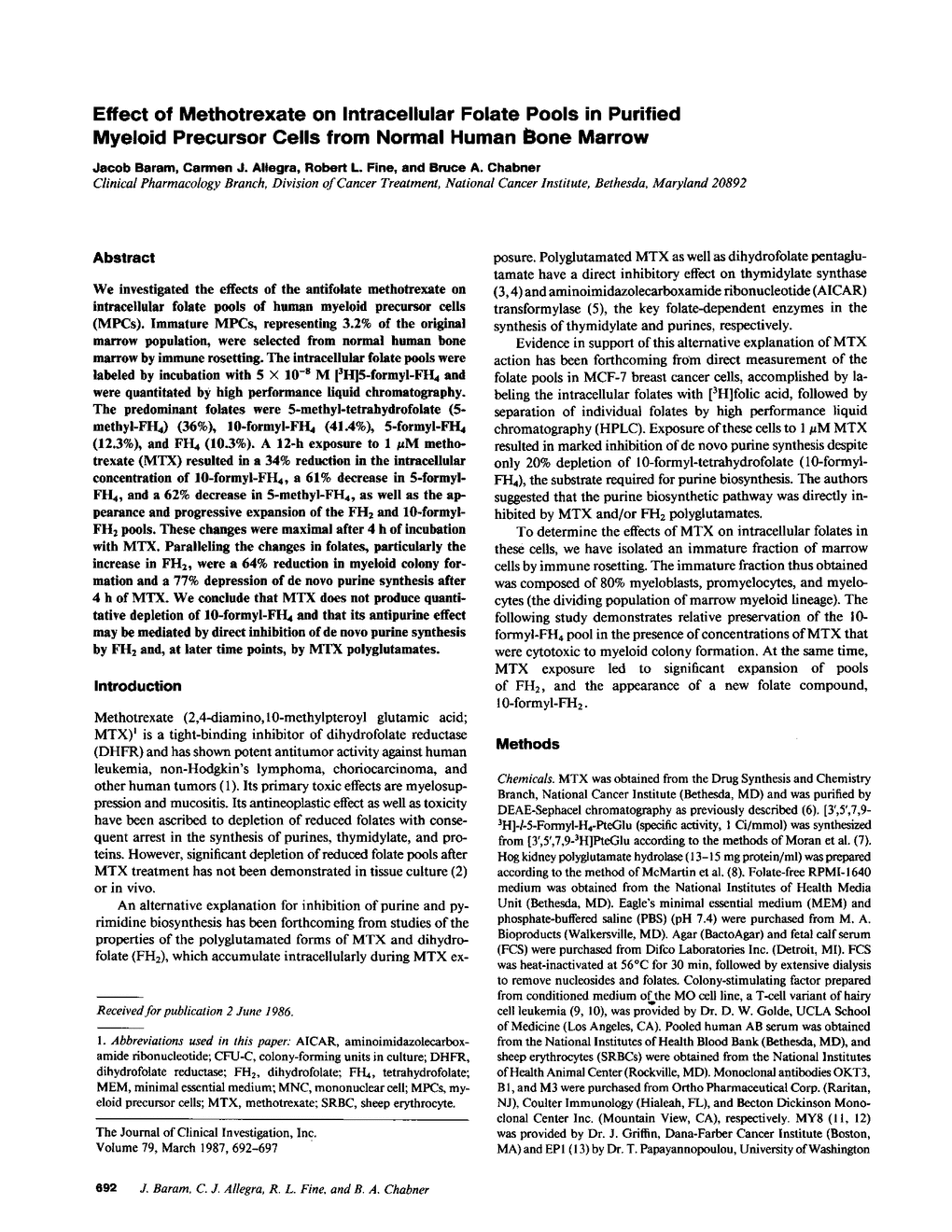 J Baram, C J Allegra, R L Fine, B A Chabner