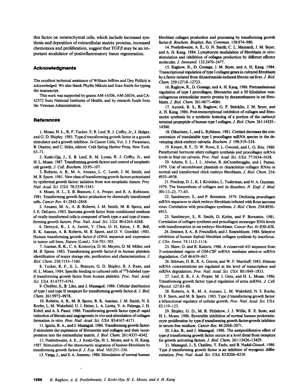 R Raghow, A E Postlethwaite, J Keski-Oja, H L Moses, A H Kang