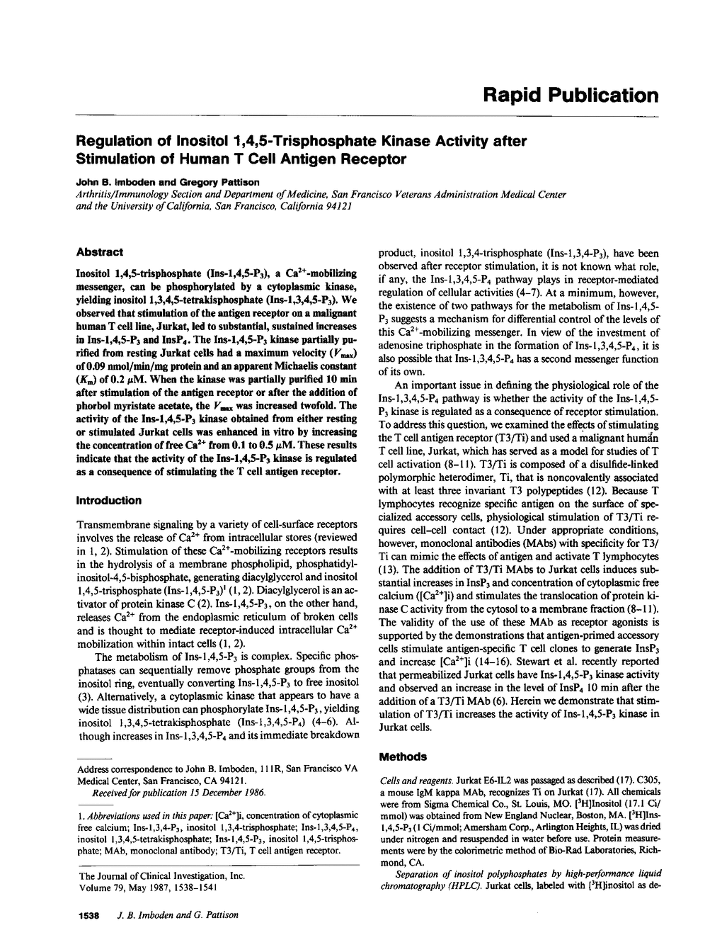J B Imboden, G Pattison