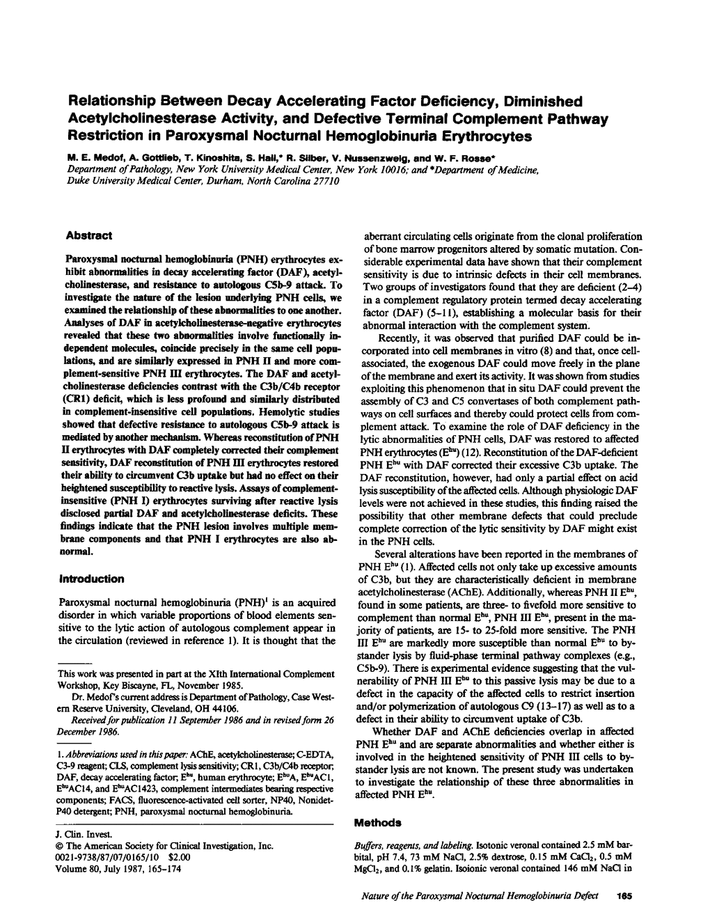M E Medof, A Gottlieb, T Kinoshita, S Hall, R Silber, V Nussenzweig, W F Rosse