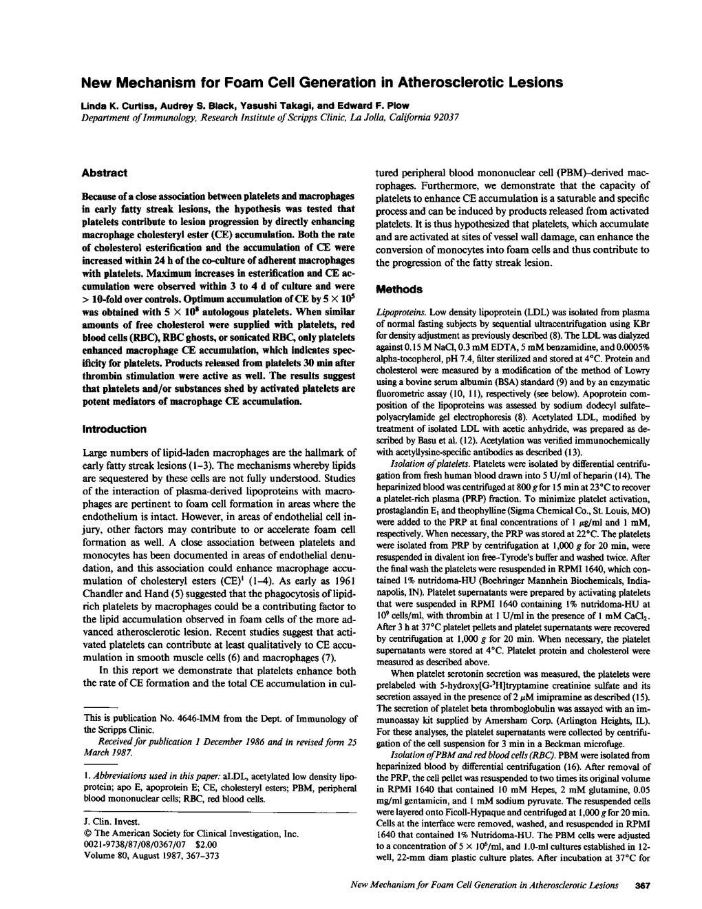 L K Curtiss, A S Black, Y Takagi, E F Plow