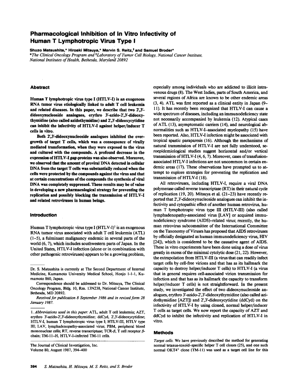 S Matsushita, H Mitsuya, M S Reitz, S Broder