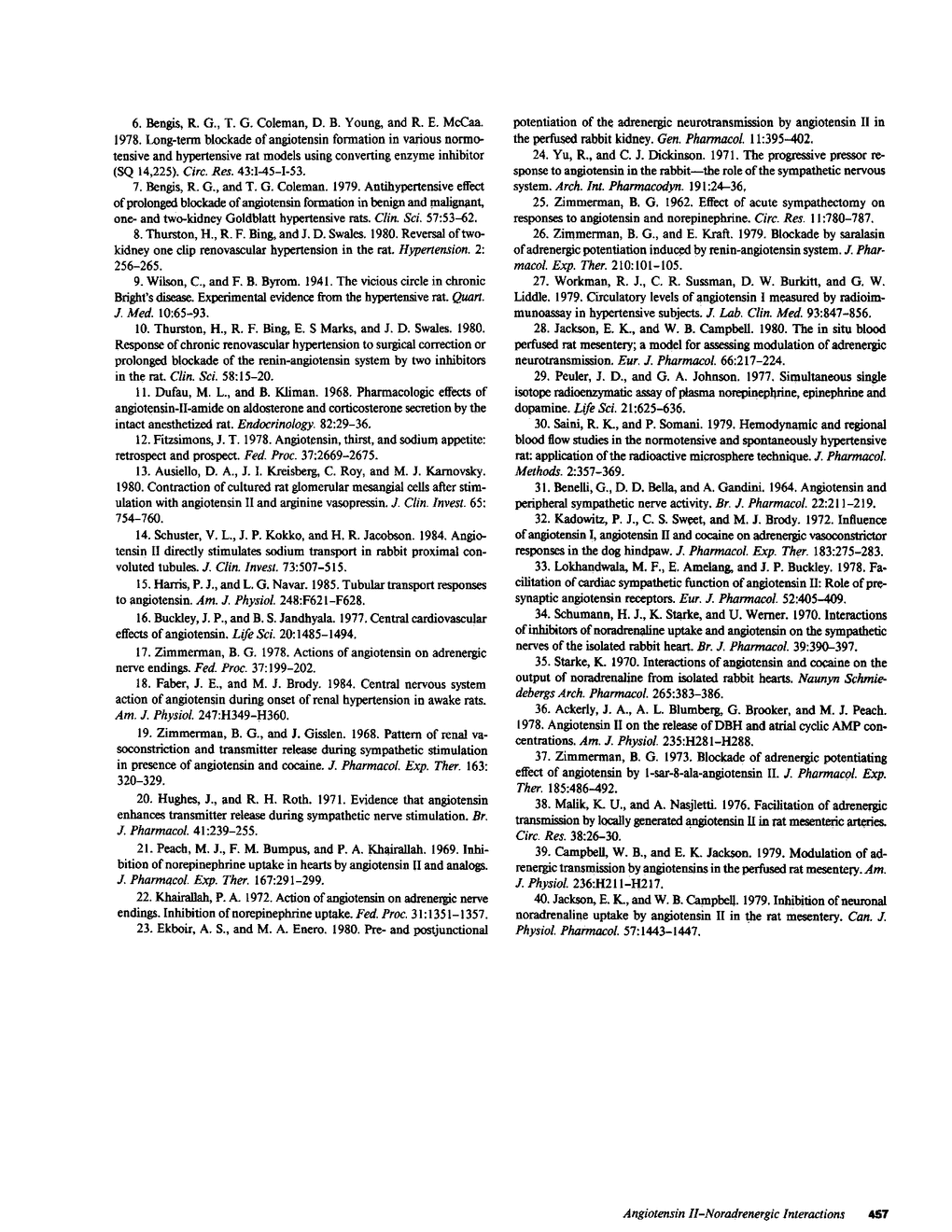 This study tested the hypothesis that interactions of endogenous angiotensin II (AII) with the noradrenergic neuroeffector junction are important in renin-dependent hypertension. In the in situ blood-perfused rat mesentery, in normal rats exogenous AII potentiated mesenteric vascular responses to periarterial (sympathetic) nerve stimulation (PNS) more than vascular responses to exogenous norepinephrine (NE). In 2-kidney-1-clip (2K-1C) rats with renovascular hypertension mesenteric vascular responses to PNS and NE were greater than in sham-operated rats, and renovascular hypertension mimicked the effects of exogenous AII with respect to enhancing responses to PNS more than responses to NE. In 2K-1C rats, but not in sham-operated rats, 1-Sar-8-Ile-AII markedly suppressed vascular responses to PNS, without influencing responses to NE. Finally, 1-Sar-8-Ile-AII attenuated sympathetic nerve stimulation-induced neuronal spillover of NE in 2K-1C rats, but not in sham-operated rats. These data indicate that renovascular hypertension enhances noradrenergic neurotransmission, and that this enhancement is mediated in part by AII-induced facilitation of NE release.