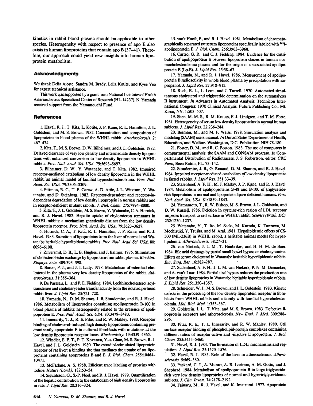 The kinetics of apolipoprotein (apo) B-100 in particles containing apo E (B,E particles) or lacking apo E (B particles) were studied in Watanabe heritable hyperlipidemic (WHHL) rabbits deficient in low density lipoprotein (LDL) receptors, and compared with those of normal rabbits after injection of radioiodinated very low density lipoproteins (VLDL), intermediate density lipoproteins (IDL), and LDL. In both groups results of kinetic modeling were consistent with the hypothesis that all apo B enters the plasma in VLDL, mainly as B,E particles, followed by delipidation and partial conversion to IDL and LDL, with concomitant conversion of some B,E particles to B particles. In WHHL rabbits, production of VLDL apo B was reduced by 40%, but LDL production was increased threefold. Defective removal of B,E and B particles in all three lipoprotein classes, coupled with preserved processes of delipidation, can account for the observed increases in the concentration of apo B (threefold in VLDL, fivefold in IDL, and twenty-twofold in LDL) in WHHL rabbits.