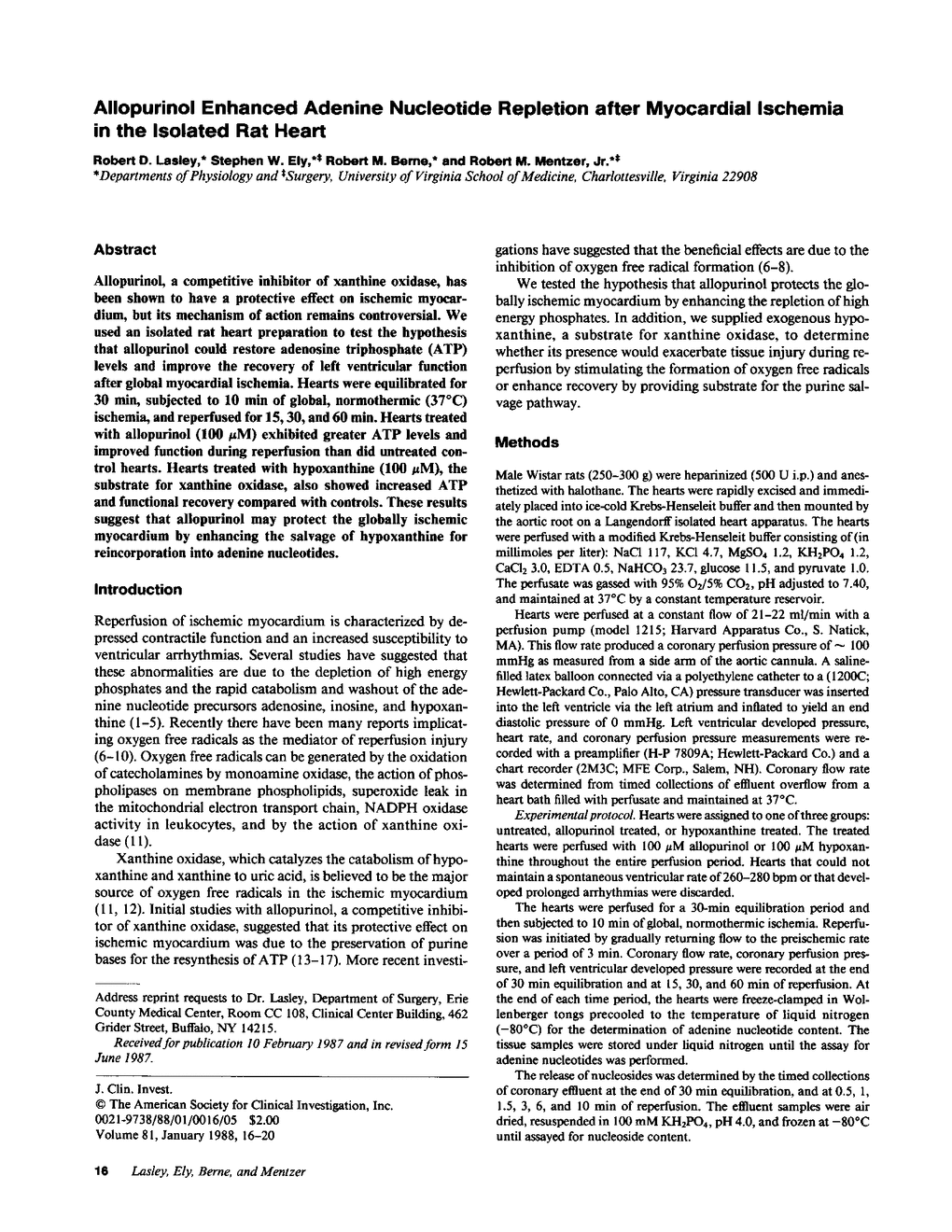 R D Lasley, S W Ely, R M Berne, R M Mentzer Jr