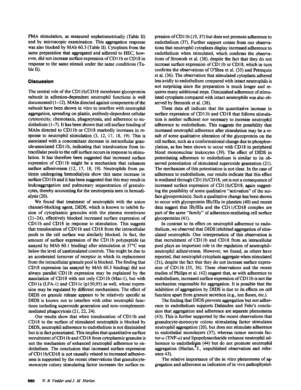N B Vedder, J M Harlan