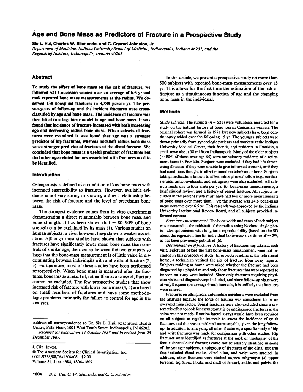 S L Hui, C W Slemenda, C C Johnston Jr
