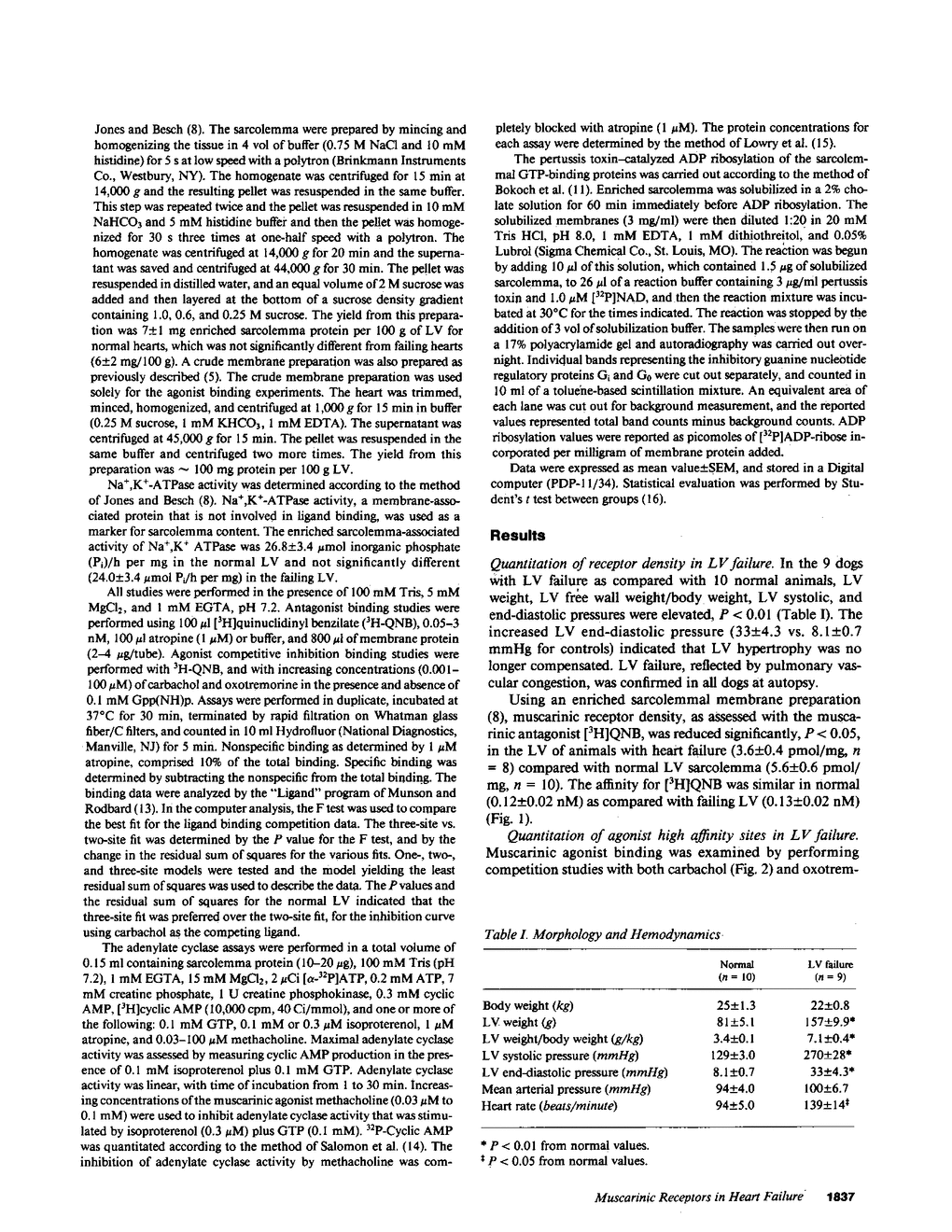 Prior physiological studies have suggested that parasympathetic control is altered in heart failure. The goal of our studies was to investigate the influence of heart failure on the muscarinic receptor, and its coupling to adenylate cyclase. Ligand binding studies using [3H]quinuclidinyl benzilate and enriched left ventricular (LV) sarcolemma, demonstrated that muscarinic receptor density in heart failure declined 36% from a control of 5.6 +/- 0.6 pmol/mg, with no change in antagonist affinity. However, agonist competition studies with both carbachol and oxotremorine showed that it was a loss of high affinity agonist binding sites in the sarcolemma from failing LV that accounted for this difference. The functional efficacy of the muscarinic receptor was also examined. When 1 microM methacholine was added to 0.1 mM GTP and 0.1 mM isoproterenol, adenylate cyclase stimulated activity was inhibited by 15% in normal LV but only 5% in LV sarcolemma from animals with heart failure even when the reduced adenylate cyclase in these heart failure animals was taken into account. Even at 100-fold greater concentrations of methacholine, significantly less inhibition of adenylate cyclase activity was observed in LV failure as compared with normal LV sarcolemma. Levels of the GTP-inhibitory protein known to couple the muscarinic receptor to adenylate cyclase, as measured with pertussis toxin labeling, were not depressed in LV failure. Thus, the inhibitory pathway regulating LV adenylate cyclase activity is defective in heart failure. The decrease in muscarinic receptor density, and in particular the specific loss of the high affinity agonist binding component of this receptor population, appears to be the major factor underlying this abnormality.