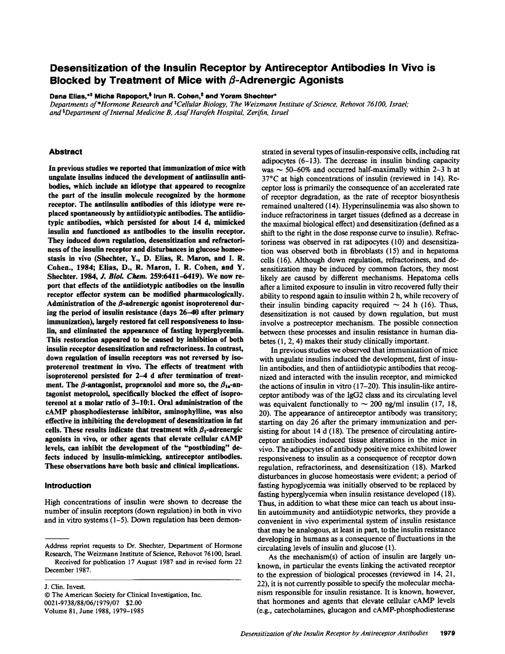 D Elias, M Rapoport, I R Cohen, Y Shechter