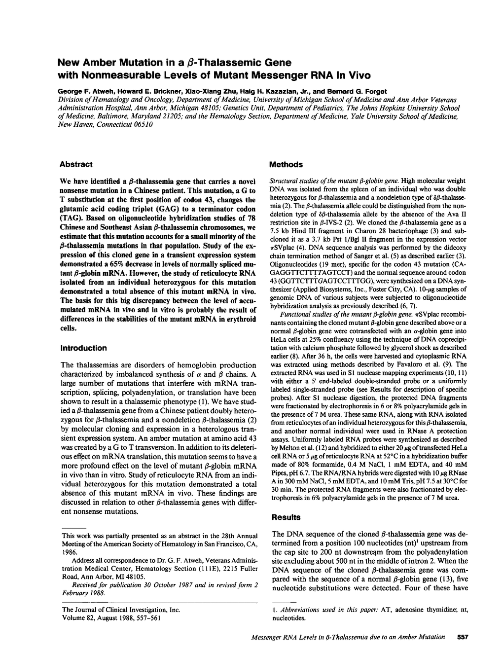 G F Atweh, H E Brickner, X X Zhu, H H Kazazian Jr, B G Forget