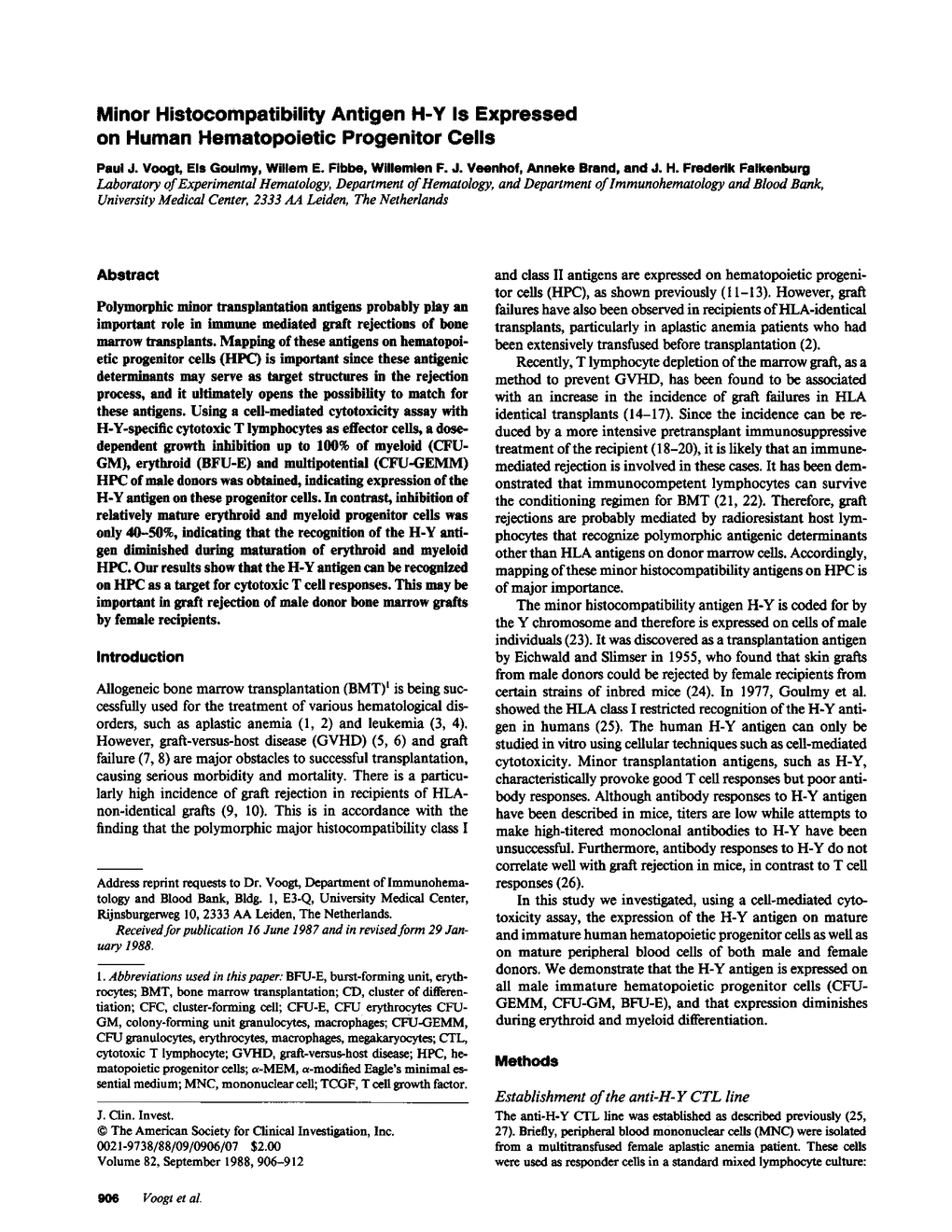 P J Voogt, E Goulmy, W E Fibbe, W F Veenhof, A Brand, J H Falkenburg