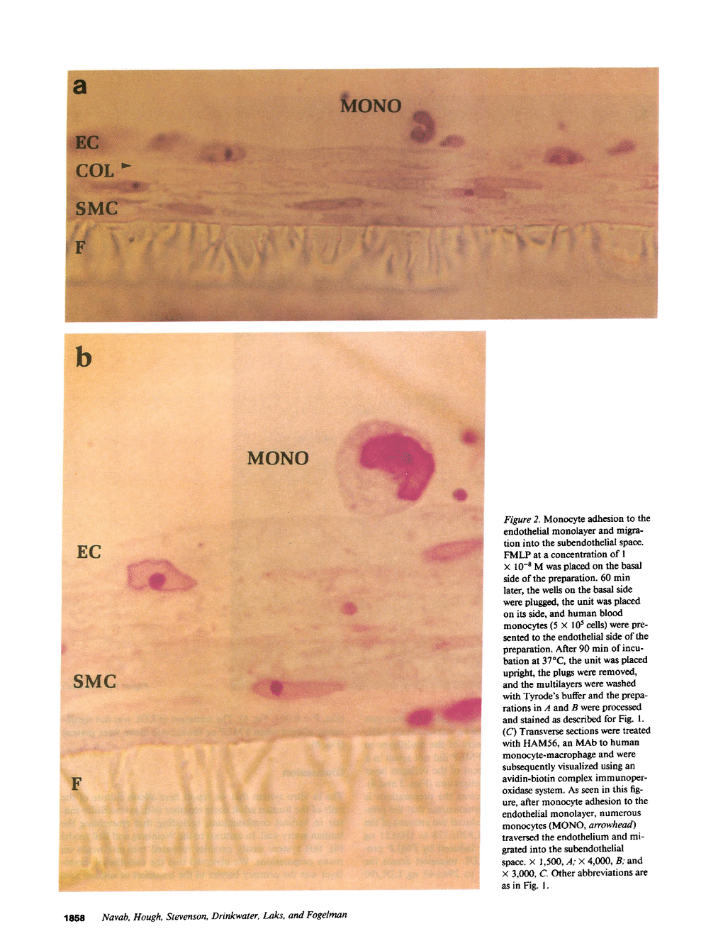 Human aortic endothelial cells (EC) and smooth muscle cells (SMC) were isolated and used to form a multilayer of EC-SMC separated by a layer of collagen. SMC and/or collagen layers exerted minimal effects on Na+ transport but impeded the transport of LDL. The presence of an endothelial monolayer markedly reduced the transport of Na+ and LDL. When monocytes were presented to the complete coculture, in the absence of added chemoattractant, one monocyte entered the subendothelial space for every one to three EC present. In contrast, neither collagen nor SMC plus collagen nor EC plus collagen induced comparable monocyte migration. Despite massive migration of monocytes into the coculture, no significant alteration in Na+ transport was observed. LDL transport into the preparation during massive monocyte migration increased modestly, but this was far less than the amount of LDL transported in the absence of an endothelial monolayer. We conclude that (a) the endothelial monolayer was the principal permeability barrier, (b) a substantial migration of monocytes occurred in the absence of added chemoattractant when both EC and SMC were present in the coculture, (c) endothelial barrier function was largely maintained after monocyte migration; and (d) these experiments indicate the need to study all three cell types (monocytes, EC, and SMC) together to understand the complex interactions that occur between these cells.