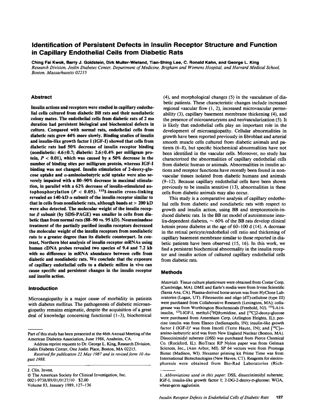 C F Kwok, B J Goldstein, D Muller-Wieland, T S Lee, C R Kahn, G L King