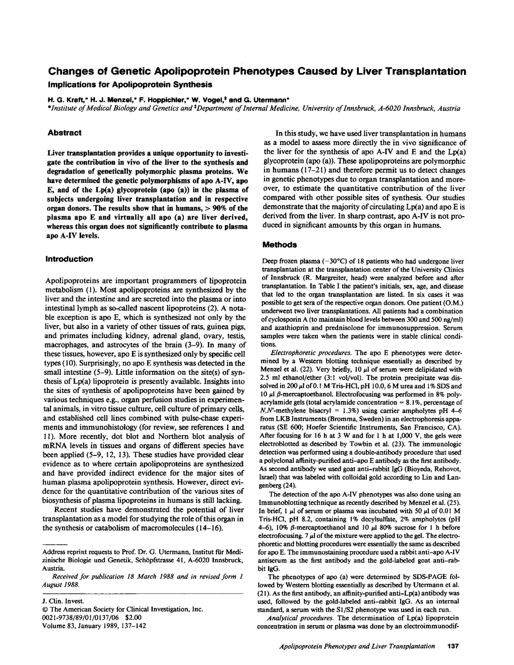 H G Kraft, H J Menzel, F Hoppichler, W Vogel, G Utermann