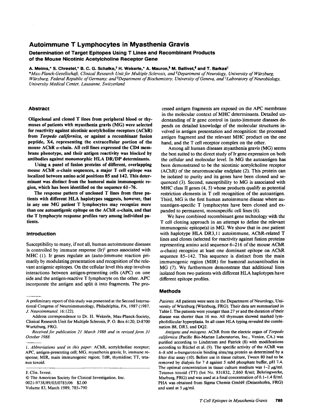 A Melms, S Chrestel, B C Schalke, H Wekerle, A Mauron, M Ballivet, T Barkas